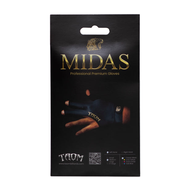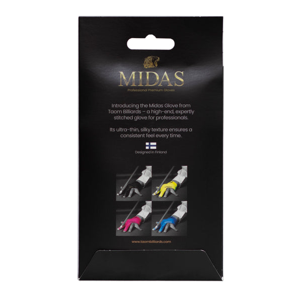 Designed in Finland by Taom, the Midas glove combines modern performance, clean design, and professional-grade functionality—making it a perfect addition to any player’s equipment or a great gift for any billiards enthusiast.
