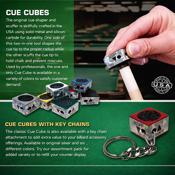 The original Cue Cube is precision-crafted in the USA from solid metal and silicon carbide for long-lasting performance -